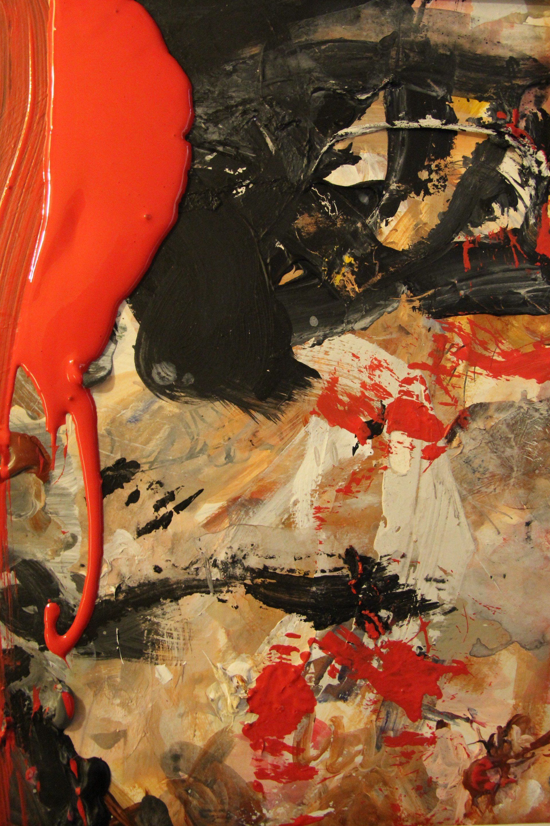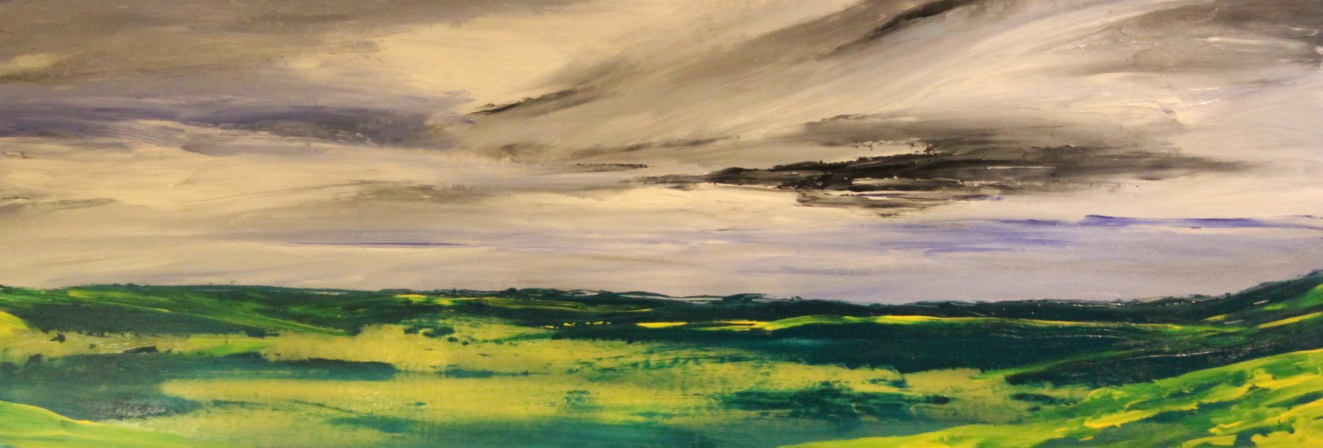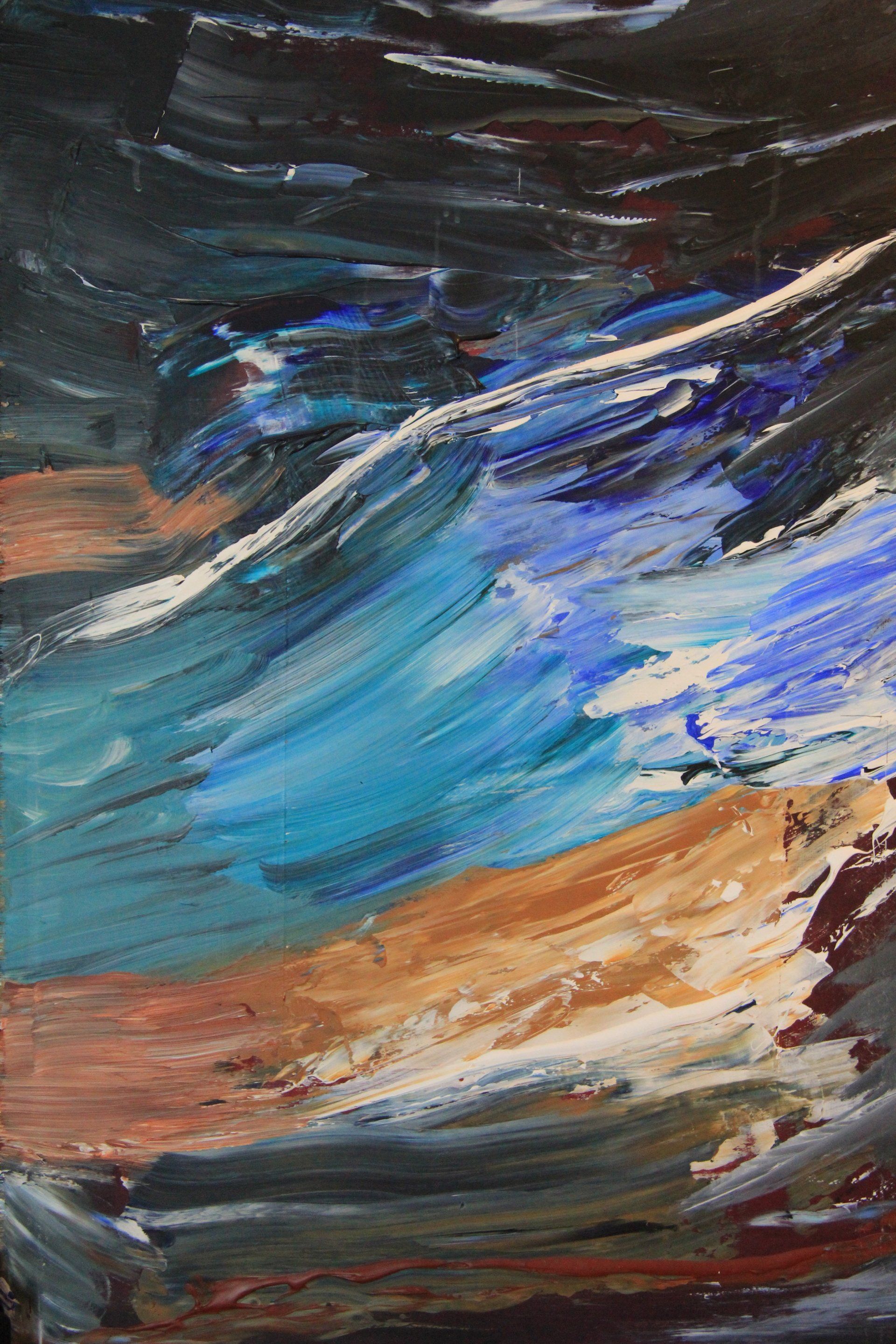 Her recent works now keep the 'subject' at a distance preferring her work to be simpler and purer in the sense of it being non-referential, a bold display of colours to record her fleeting experiences, often abstract and always spontaneous and uncompromising. She mainly uses acrylic paint which is kinder to the planet by using fewer chemicals and also enjoys the speed in drying time, being able to over paint rapidly. "I feel liberated by my somewhat explosive, sometimes risky, painting style but there still has to be a balance, no matter how daring, there has to be a sense of space, colour and shape; there still has to be discipline and structure and this does not happen by chance but by hard work".