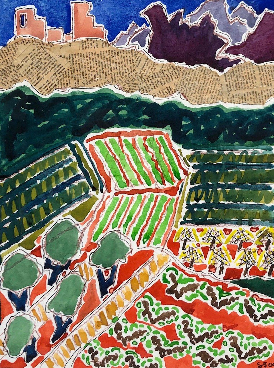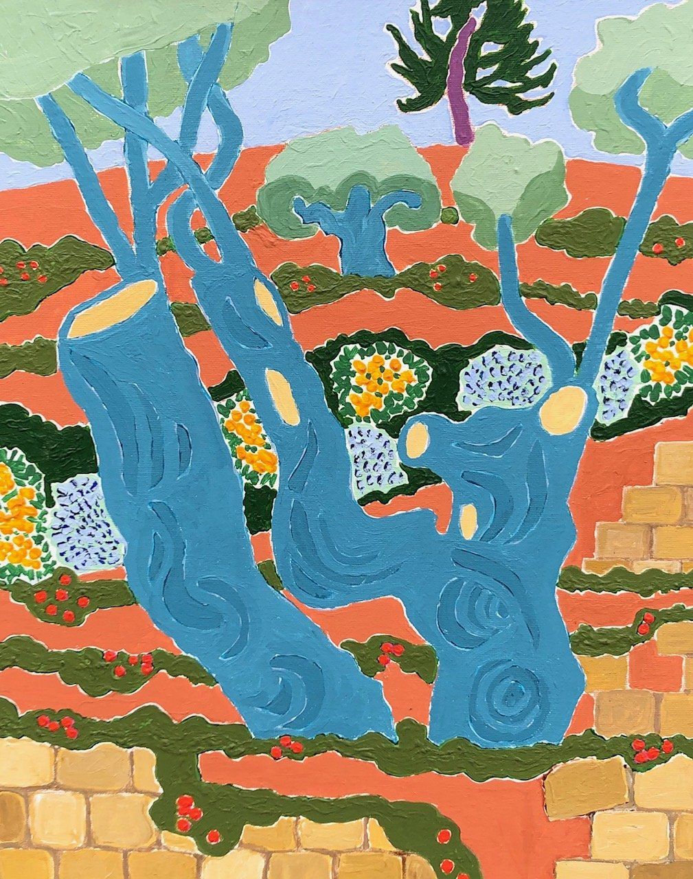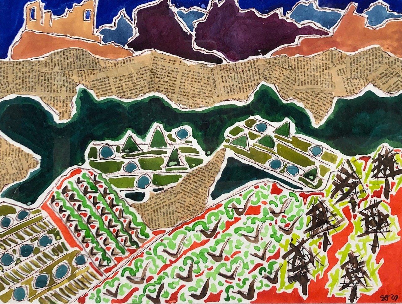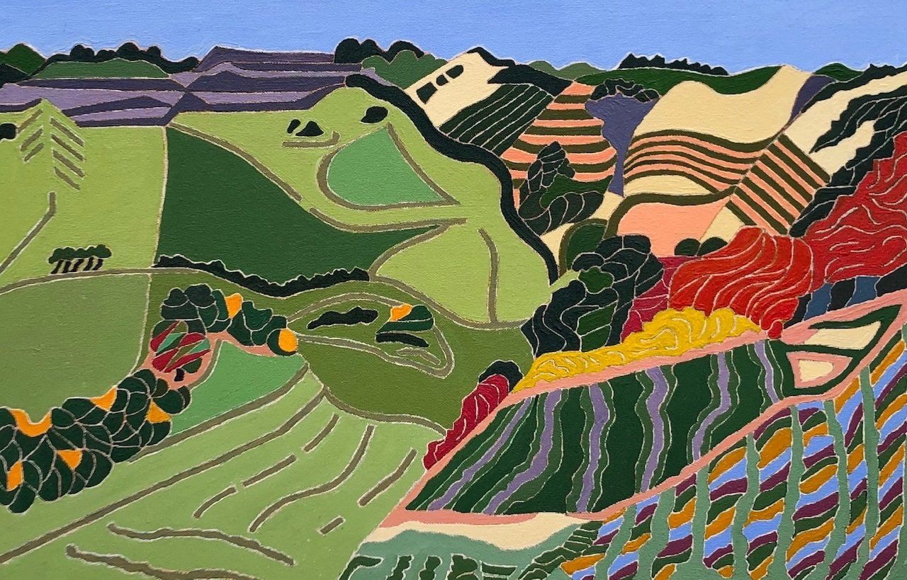 Stewart Jones has a wide knowledge and love of landscape and a vibrant, forceful and original way of expressing his interest. This fascination is reflected in his work in which he depicts varying landscapes; from the coastal cliffs of Dorset, through the vineyards, olive groves and lavender fields of France and Spain, to the coast of Sicily.