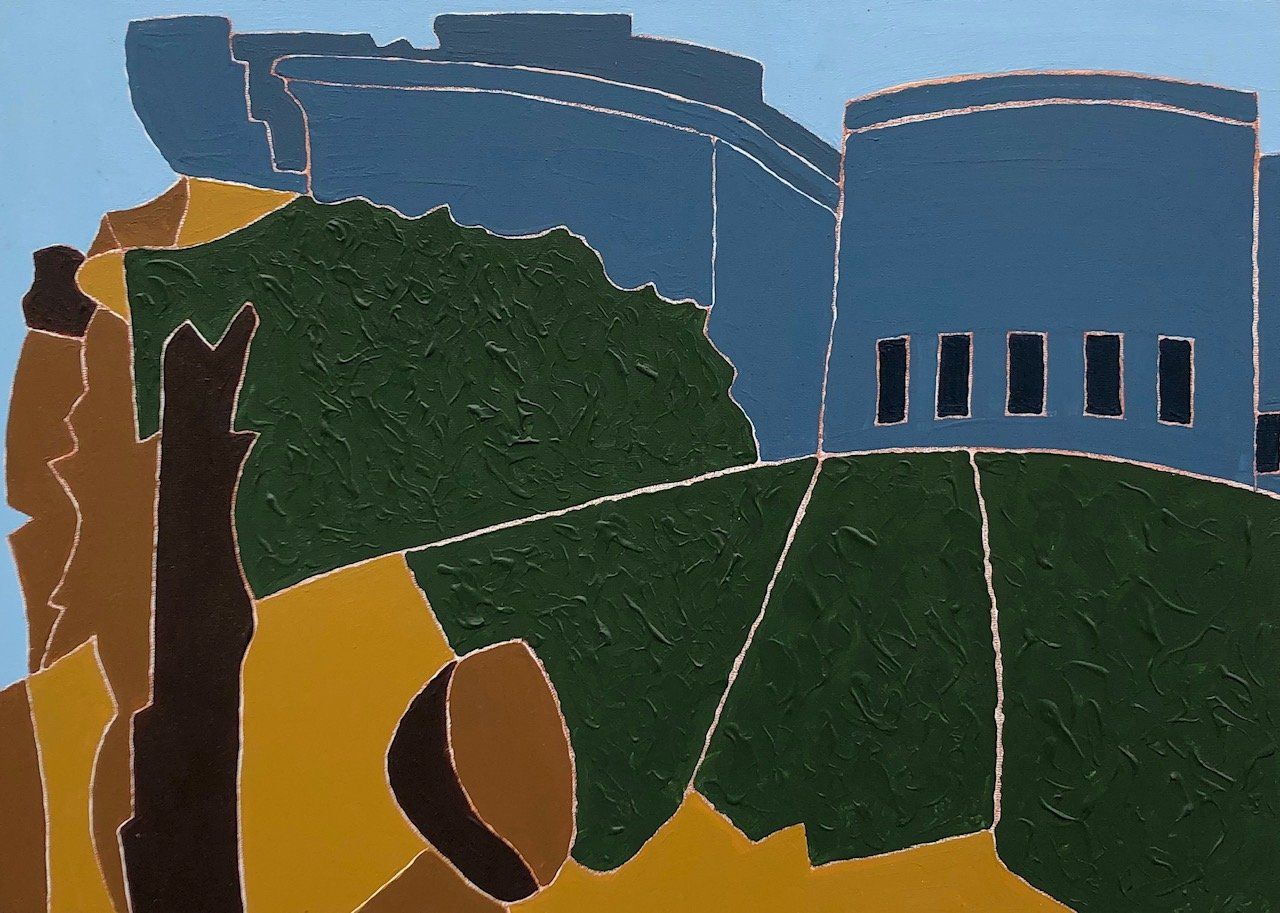 He has never forgotten the guidance of the painter Bruce Killeen, formerly tutor at the Royal Academy Schools and art critic for the Guardian, and is now putting into practice Killeen’s teaching on the use of space, form and colour in his paintings. Encouraged by the modernist architect Christoph Bon to expand his interest in twentieth century and contemporary pictures, Stewart began painting again.