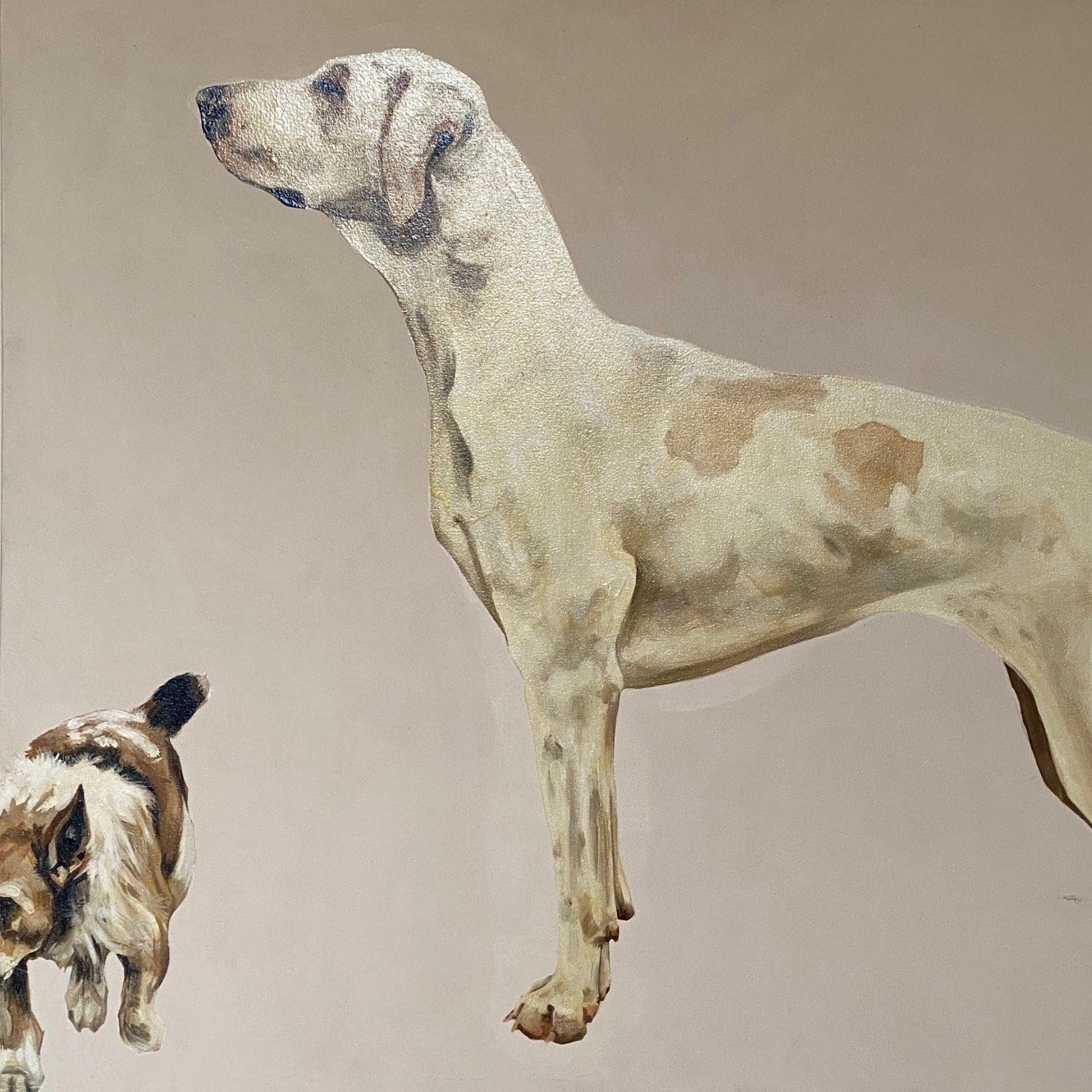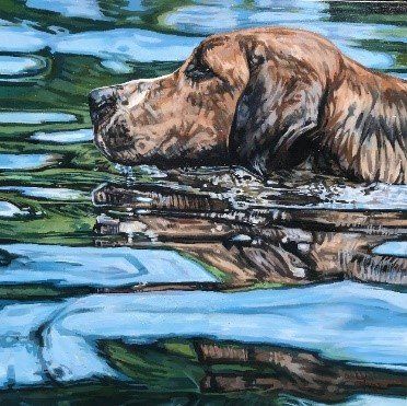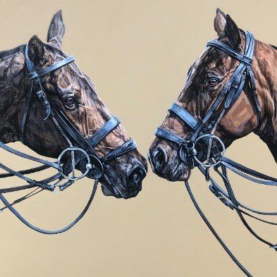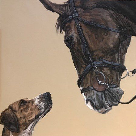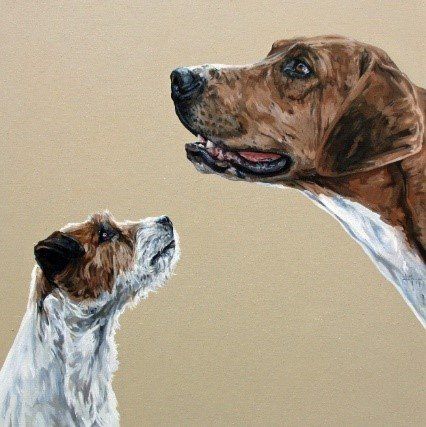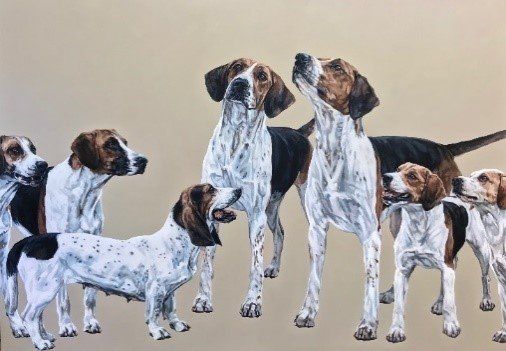 Tania is based in London but was born and grew up in North Yorkshire. She studied at the City & Guilds of London Art School where she completed her diploma and post-graduate studies in Fine Art Painting. Now working from her studio in southwest London, Tania predominantly paints animals from throughout the British Isles. Using photography, she trails the country taking images to base her work from. Tania is an exciting addition to animal painters because her work is so different: alive, dynamic and accurate. She concentrates on the breeds she knows, foxhounds and coursing greyhounds, having been taught hound conformation by Captain Ian Farquhar MFH, of the Duke of Beaufort’s. Unless vital to the picture – as with minkhounds in water – Tania portrays her subjects without background. They stand off the canvas, often only the head or part of it, with nothing that will detract from their own raw energy and character. Using a square format to create her images is fundamental to the environment that she wants to convey in her work; an unbiased approach retaining the hound’s anonymity within the pack.