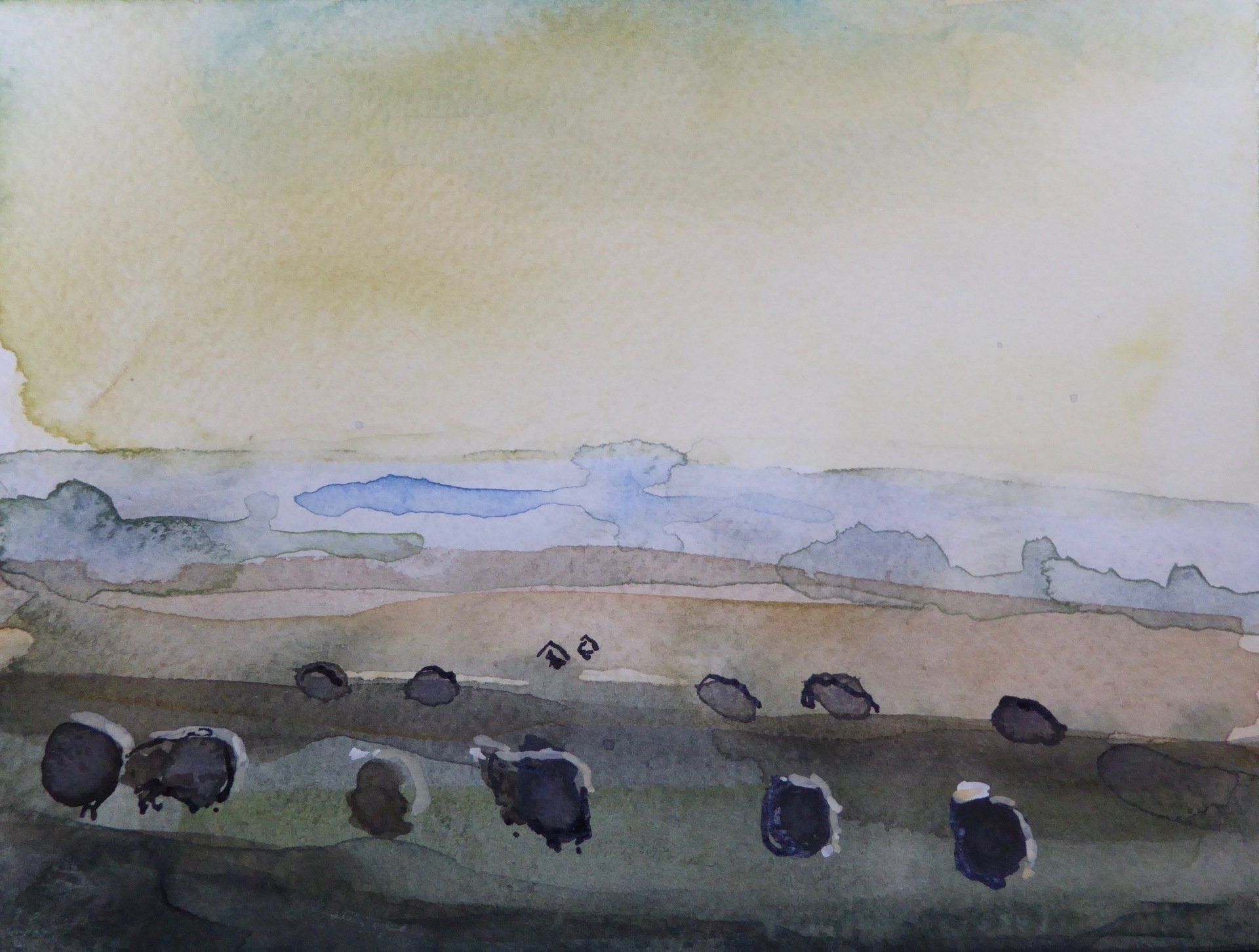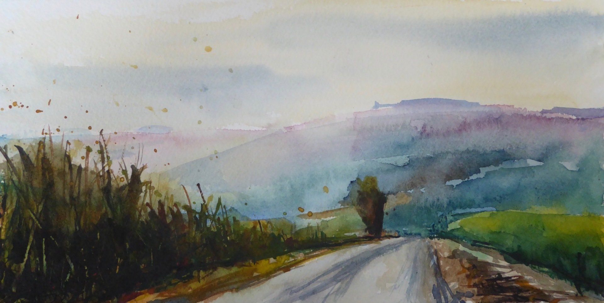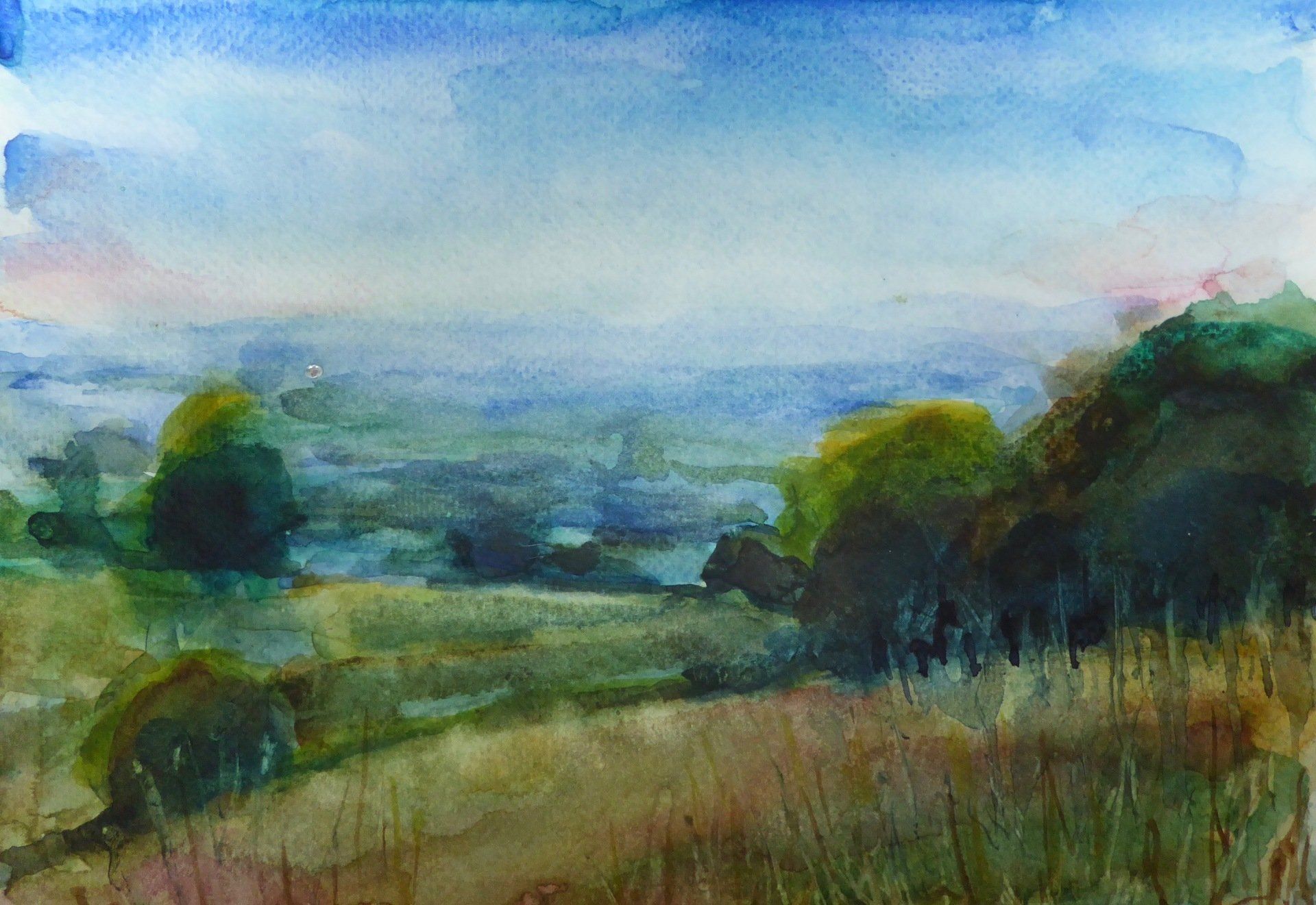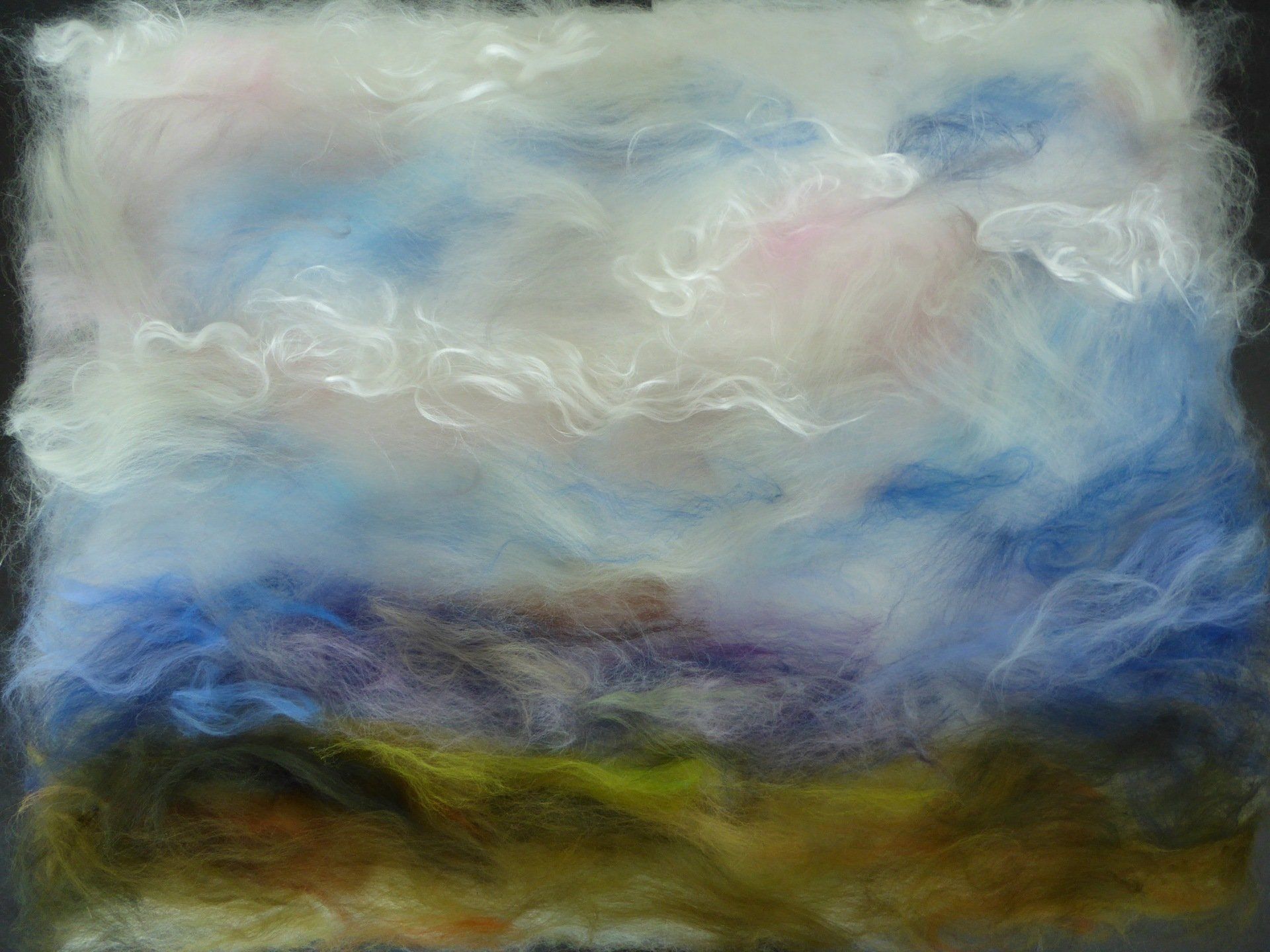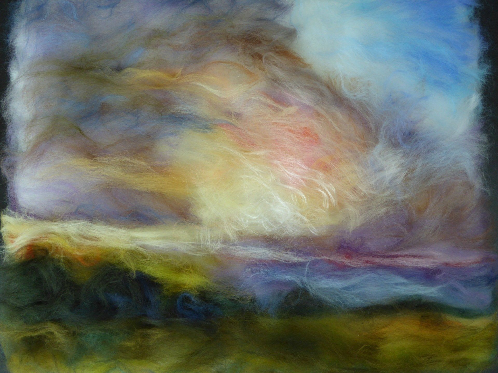 Tin is a West Country based artist and is known for her heavily impasto oil landscapes. However, now she works in a completely new (and so far unused) medium of mixed wool & silk fibre and more recently watercolour & mixed media, which are recognisably Tin's style. Texture has always been a key part in her work and these wool paintings are no exception. In Tin's oils, light was an essential factor and was achieved through using the contradiction of the heavy impasto of oil paint; now light is achieved as effectively, but the texture is ethereal.